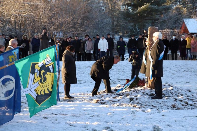 Föreningen Krigsveteranerna på Åland r.f. samlades traditionsenligt vid Minnesstenen för kransnedläggning, hedersvakt samt tal av kyrkoherde Mari Puska.