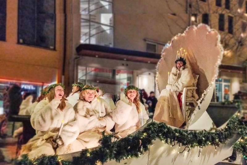 Luciatåget uppnådde sin fornstora längd med hästar, hundar, fyrhjulingar och förstås Lucia själv. De flesta traktorer och brandbilar deltog dock i Luciacruisingen som hölls för tredje året och Gomorron åkte till startplatsen i Jomala.