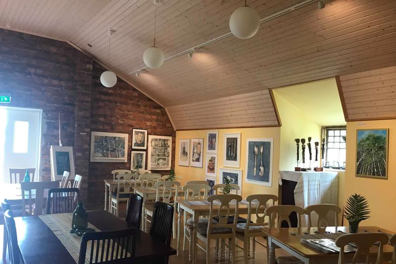 Utställningen bjuder på konstverk av konstnärerna Ulla Hagström och Gunilla Olsson, samt illustratören Berit Olanders, och deras konst kan ses på Pettas ekobageri och hantverkscafé i sommar fram till den 12 augusti. Vi har träffat Gunilla och Berit, och har också fått en pratstund med caféinnehavarna Karin och Ulf Eklund, som berättar att de under de tretton år de bedrivit caféverksamhet där generellt får mera utländska besökare än åländska under somrarna.