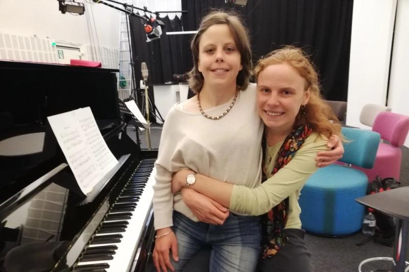 Marie och Karin framför Barfotasånger i St. Görans kyrka