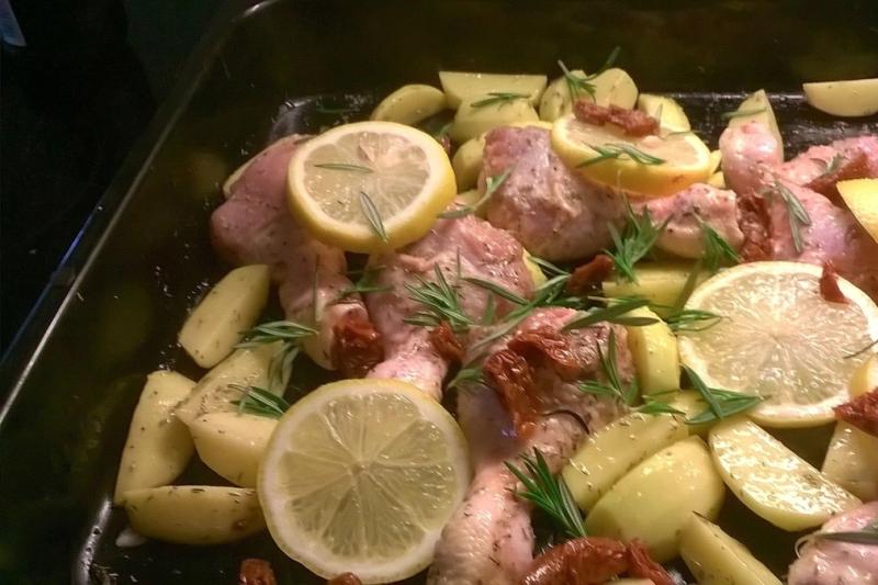 I "På menyn" hämtar vi idag inspiration till vår mat från trakterna kring Medelhavet och från amerikanska Södern. Vi ska nämligen göra en medelhavsinspirerad kyckling i ugn med citron, vittvin, rosmarin, oliver och soltorkad tomat samt potatis. Dessutom ska det bli stekta gröna tomater och det är ju något man bland annat gör i amerikanska södern.