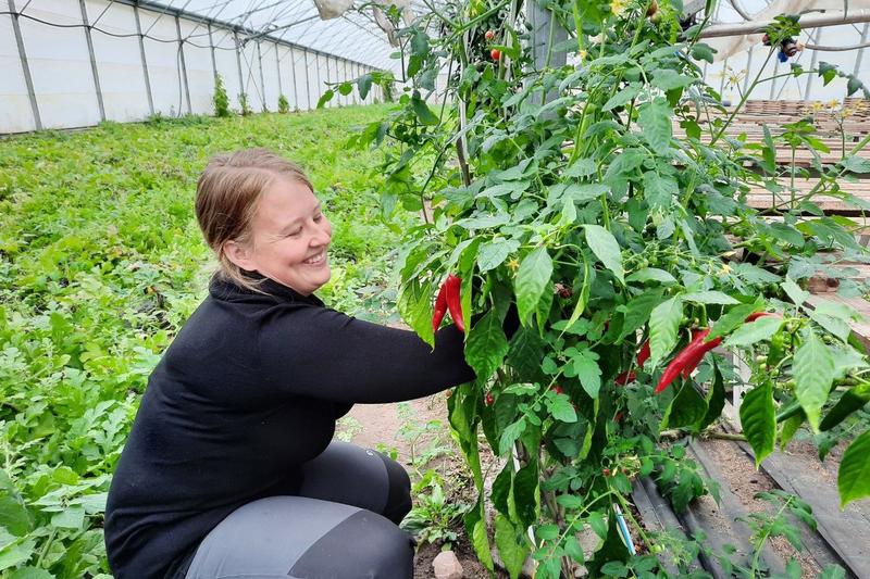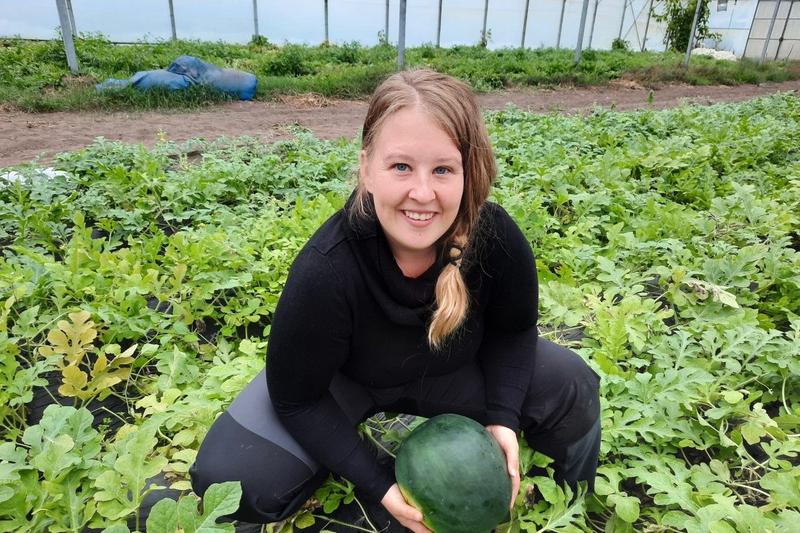 Saras växthus rymmer mer än bara meloner, även tomat och chiliplantorna bär frukt just nu. - Själv gillar jag bäst nätmelonen, den är så exotisk, säger Sara.