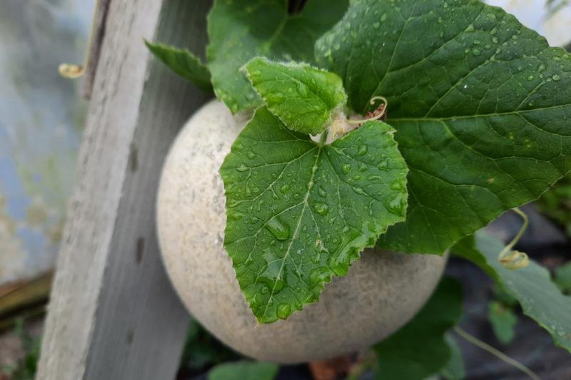 Nu är det skördetid för melonerna i Sara Johans växthus i Pålsböle. -Javisst, vi håller precis på att skörda för att ha nåt att sälja på Skördefesten, berättar Sara.