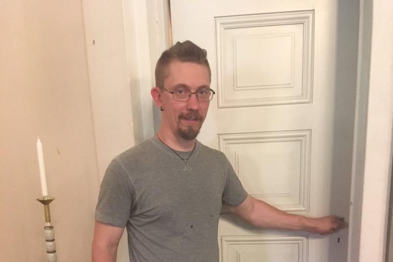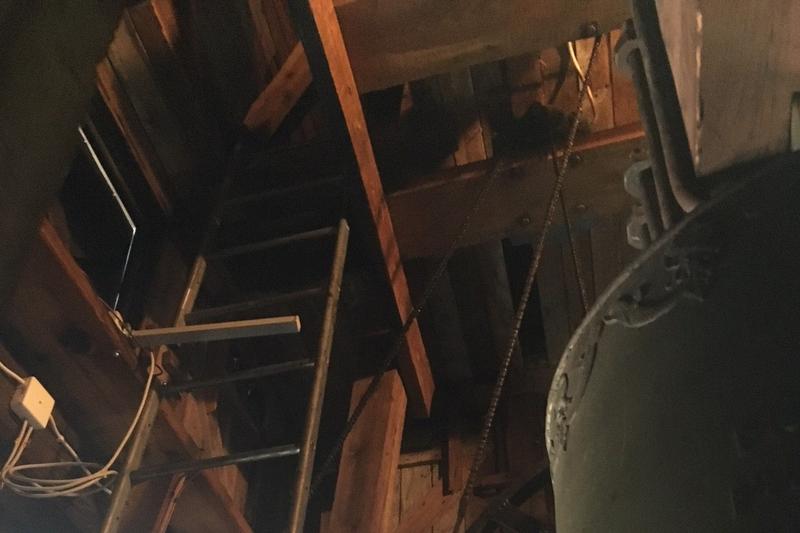 Vår guide upp till tornet är Tony Högbäck, ansvarig arbetsledare i Mariehamns församling.
