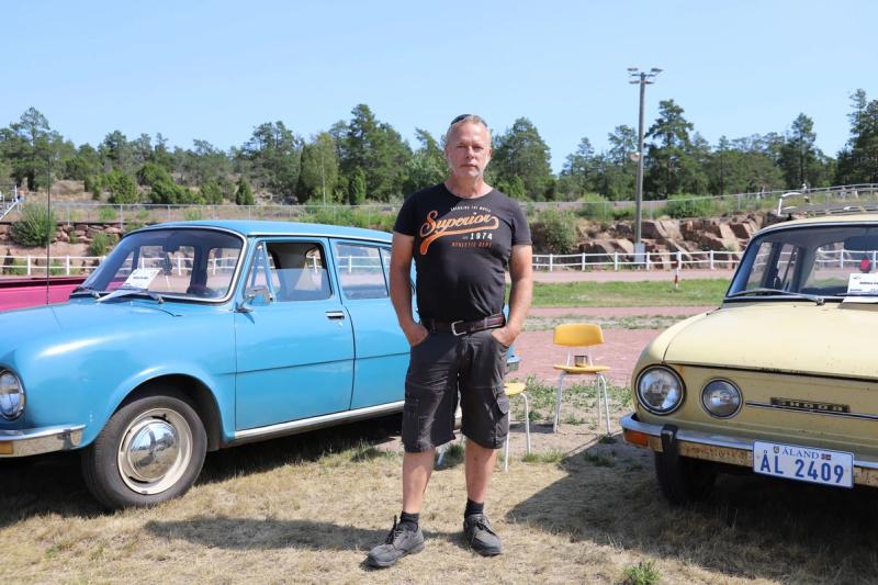 Ålands Radios reporter Niklas Grönholm begav sig ut till bilutställningen på travbanan och träffade flera bilentusiaster. Michael Johansson från Mångstekta, Sund, ställde för första gången ut en bil på bilutställningen, eller egentligen borde man säga bilar, för han deltog inte bara med en bil utan två. Vi hör Michael Johansson berätta mer om sina två bilar.
