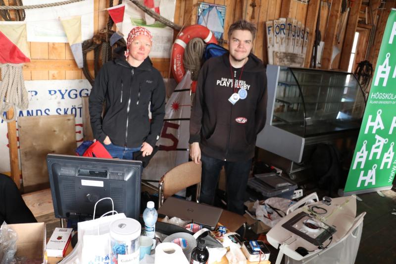 Bild 2 av 2Anna Fribe och Johnatan Karlman i den bod som fungerade som robotisternas verkstad. Foto: Felix Quarnström