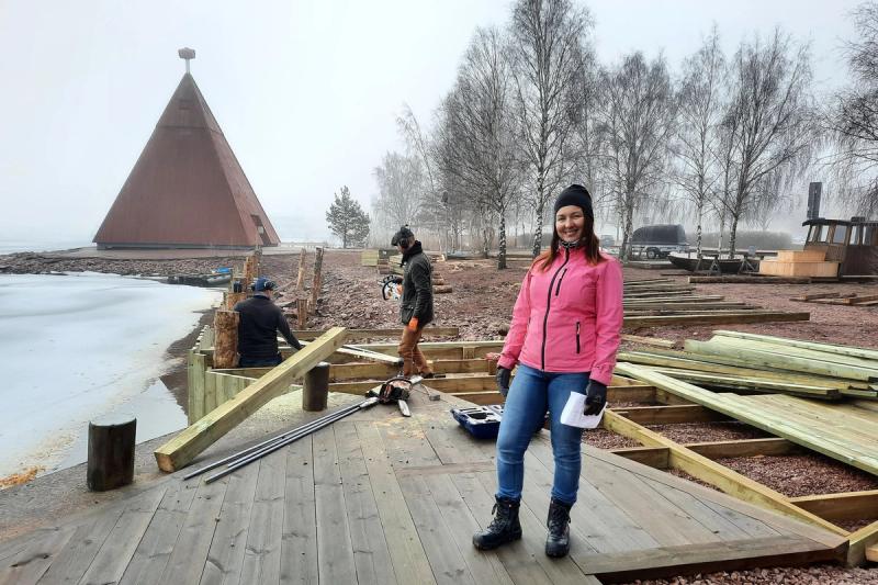 – På den nya terassen blir det perfekt att avnjuta en glass i sommarsolen, säger sjökvarterets vd Maria Sten-Lindqvist.