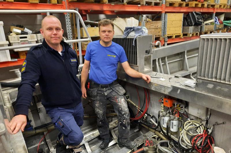 Det gör vi för att ta en titt på den båt som de håller på att bygga om till sjöräddningsbåt och som i vår kommer att användas av Eckerö Sjöräddningsstation. Där träffar vi Stephan Remmer och John Lundqvist.