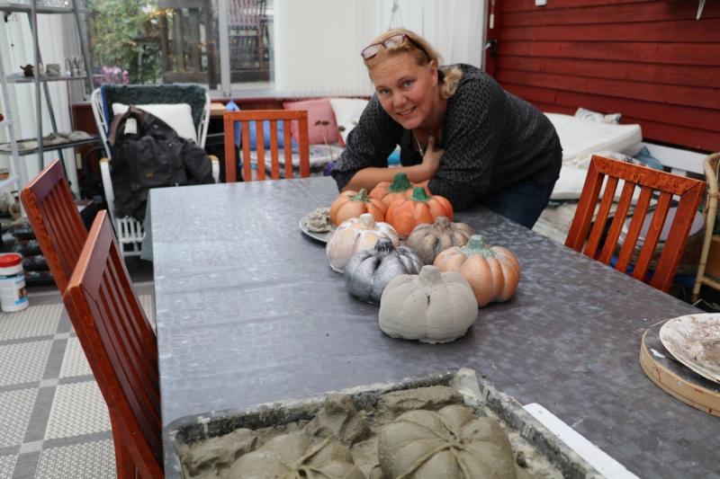 Susanne Jansén har alltid gillat att sticka och virka och pyssla med sina händer. Efter två år på Ålands folkhögskola fick hon en nytändning i sitt skapande. -Det var otroligt att spännande att lära sig att jobba med nya material och hitta nya tekniker, säger Sussi. Den här hösten satsar hon på färgglada pumpor som hon gjuter i betong.