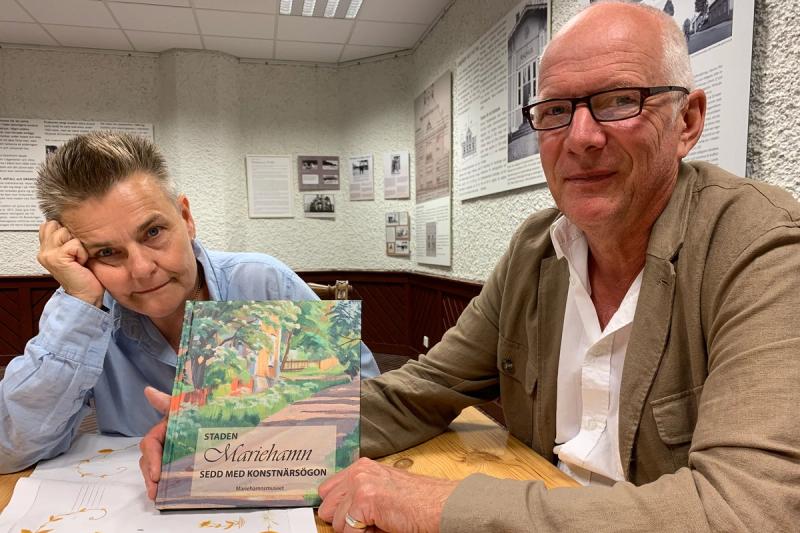 För två år sedan visades tavlor med Mariehamnsmotiv där också allmänheten bjöds in att låna ut egna konstverk. Den utställningen har nu utvecklats till boken “Staden Mariehamn sedd med konstnärsögon” som författats av Kjell Ekström med hjälp från Gunda Åbonde-Wickström, Jerker Örjans och Jonna Kevin. Och boken har i sin tur inspirerat till sommarens stadsvandringar. Kjell Ekström berättar till Gomorron om boken som har boksläpp torsdagen den 30 juni kl 16-19 på Torget i Mariehamn.