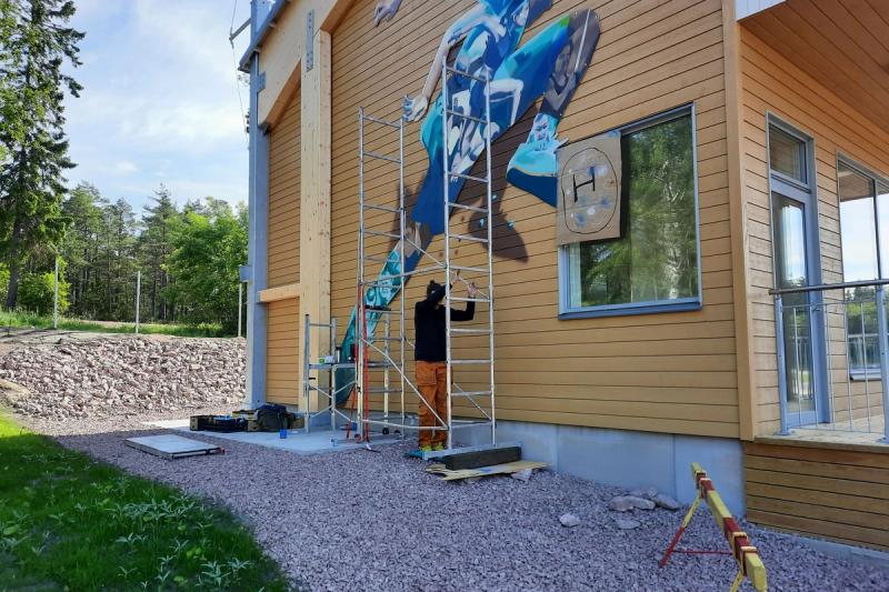 Ny stor vägg dekoration på Baltic friidrottsarena