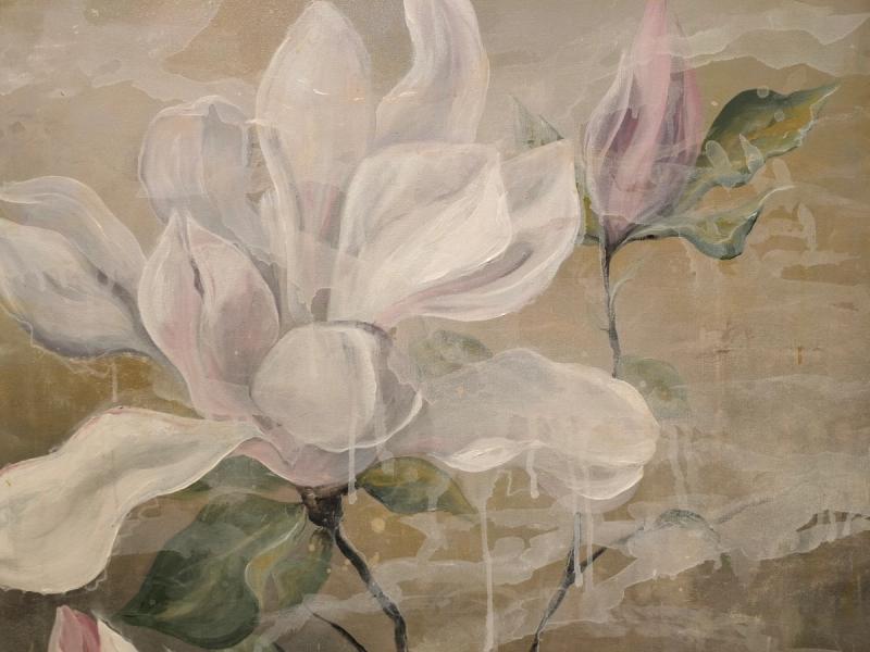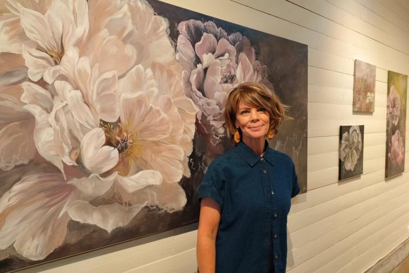 – Jag har funderat länge och sugit på den här karamellen, att göra en utställning med maximerade blommor. Egentligen vill jag måla ännu större, men det finns praktiska begränsningar, säger hon.