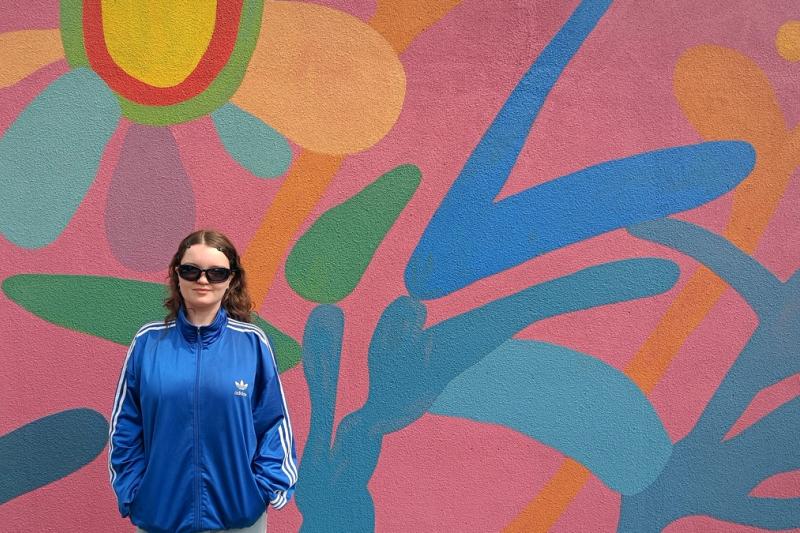 Anna Ofelia studerar vid högskolan Konstfack i Stockholm och jobbar idag med främst 3D-skulpturer och musik. Muralen porträtterar kreatörens tidigare stil och är baserad på en av hennes oljemålningar.