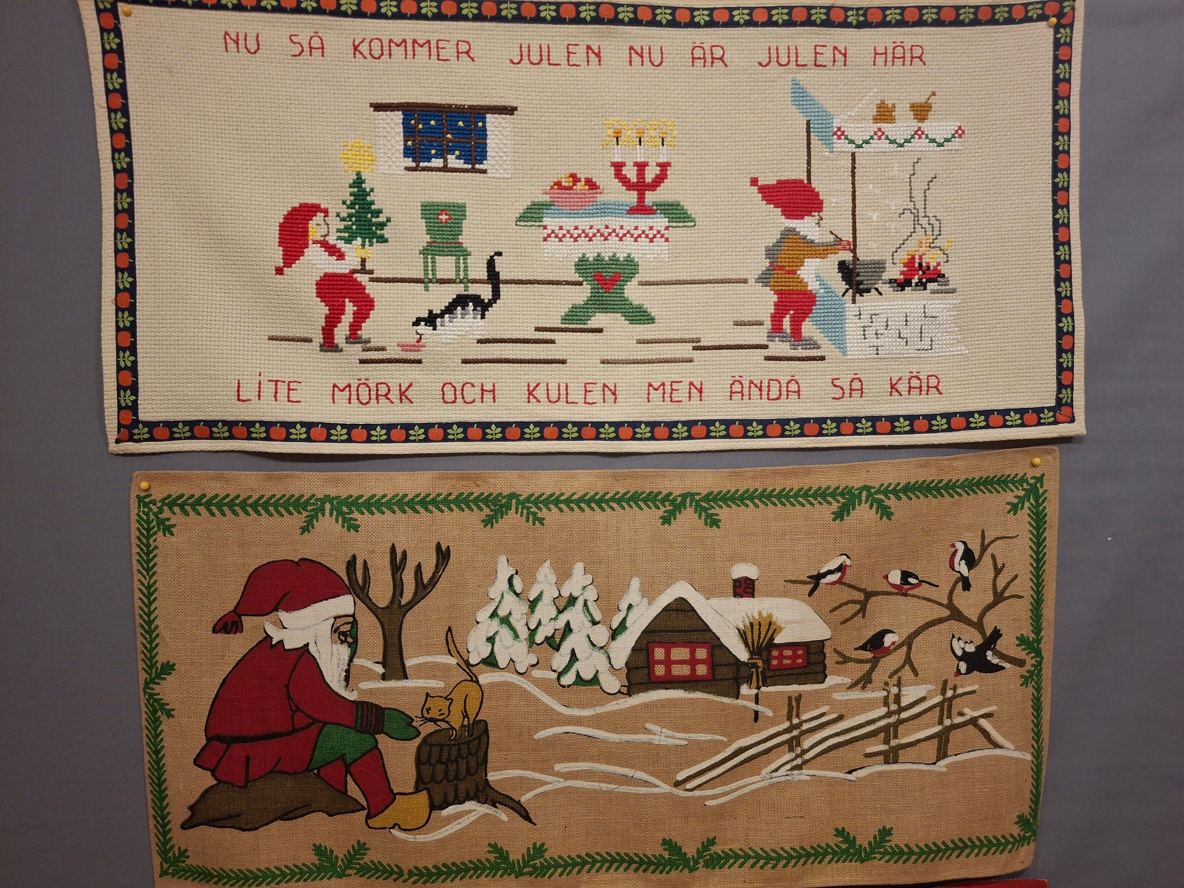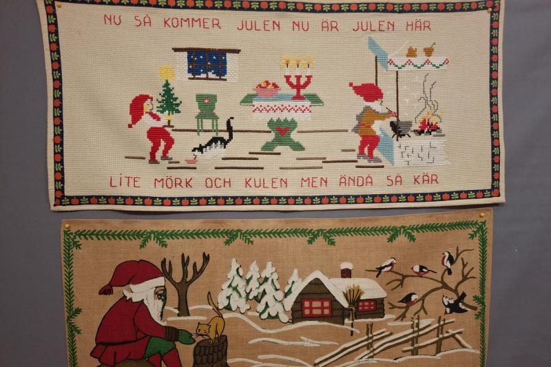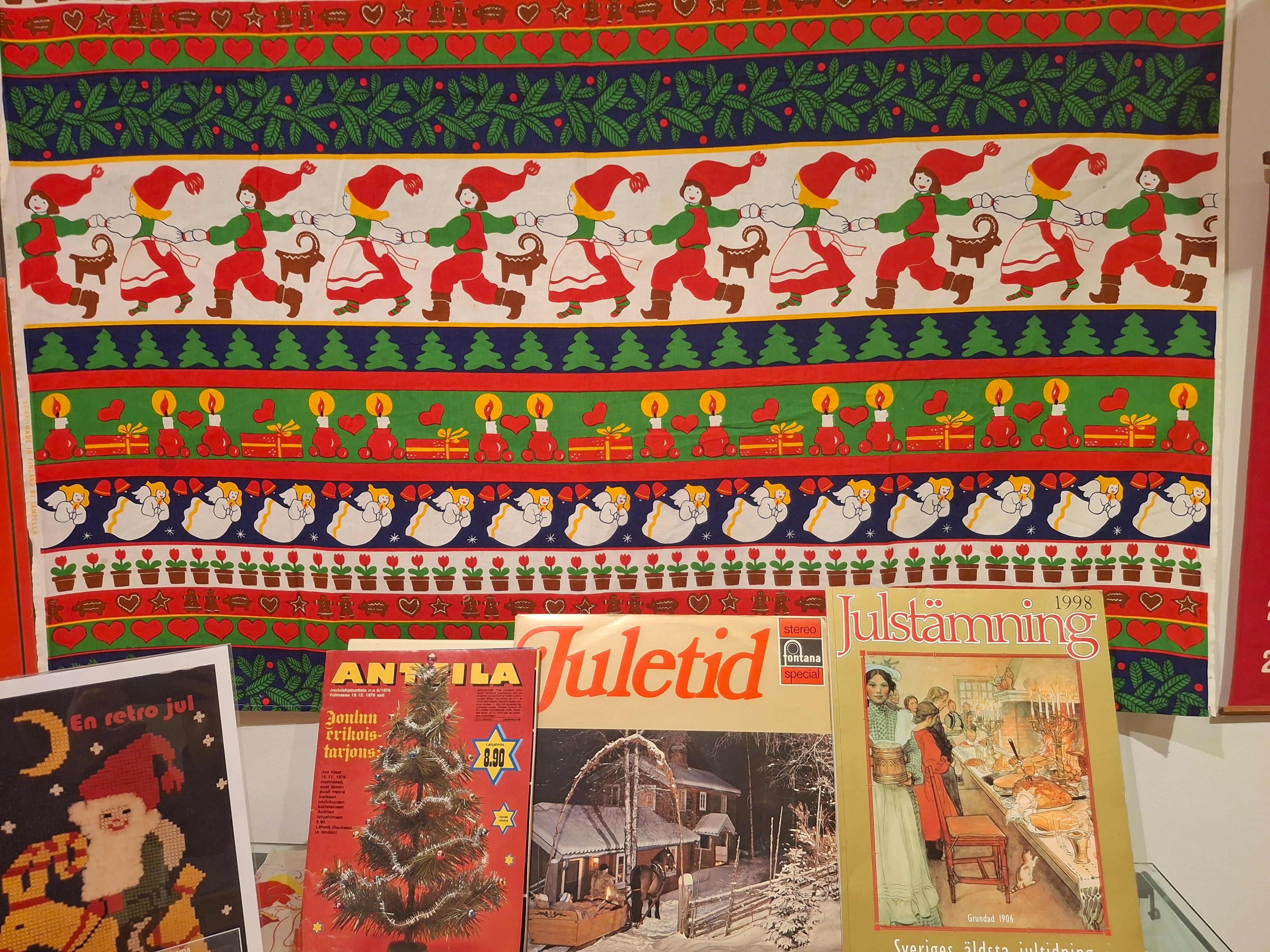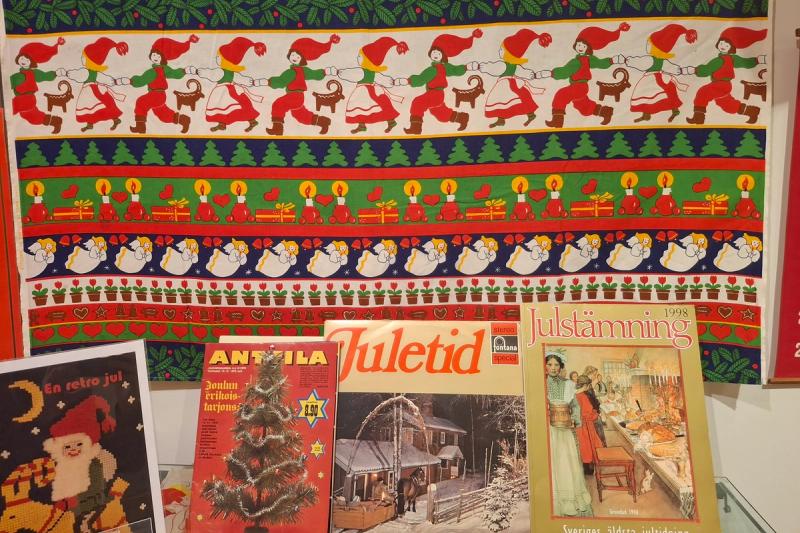Det är Ann-Christin Sjölund som har satt ihop utställningen där man ser olika sorters julpynt, planscher, gardiner, burkar och mycket mer.