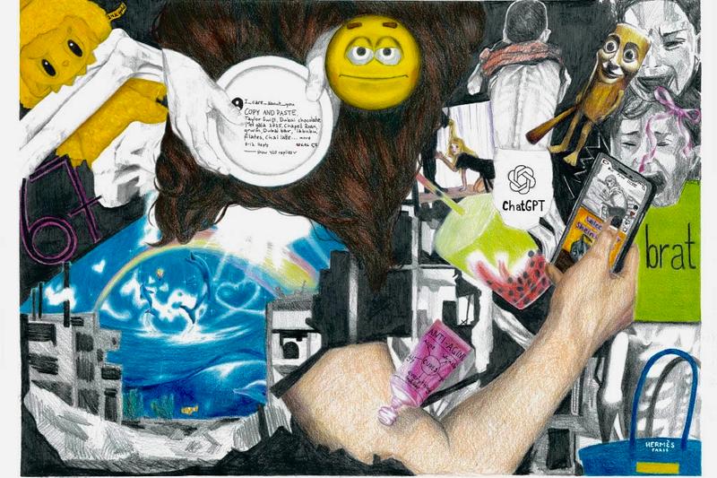 – Man scrollade och såg videor från offren i Gaza, och direkt efter dök det upp någon dum trend eller gullig kattvideo. Jag upplevde att många av oss såg det här samtidigt, men ingen riktigt pratade om det. Kontrasten blev så absurd i huvudet att jag kände att jag måste skildra det, säger Maria-Louisa.