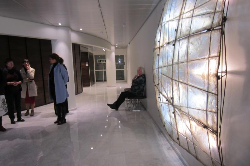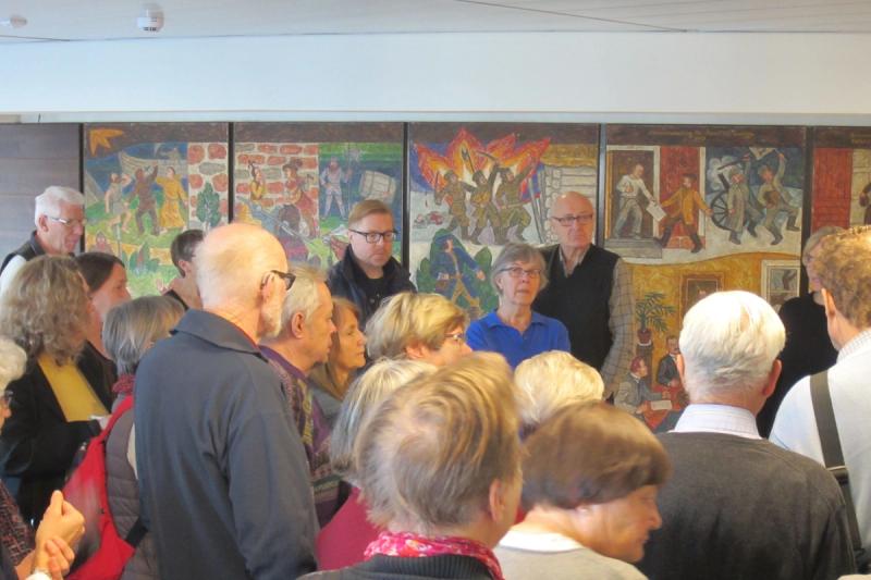 Intresset var stort och uppslutningen god då lagtingsdirektör Susanne Eriksson tillsammans med Ålands konstmuseums intendent Susanne Procopé Ilmonen idag guidade runt bland konsten i det nyrenoverade lagtingshuset.