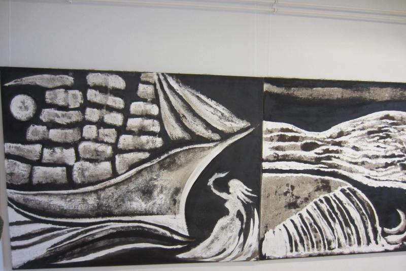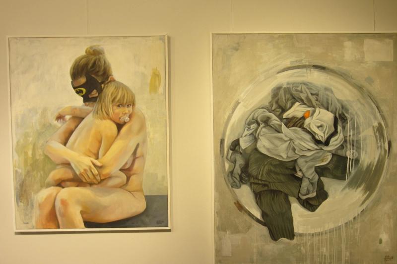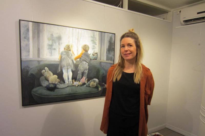Erika Signell (tidigare Pettersson) målar ömsinta och respektfulla porträtt av sina barn. Hon har fångat såväl stillheten som det lekfulla mitt i vardagen, som barn som busar under nytvättade lakan.För första gången på tio år har hon målat i olja och också jobbat tredimensionellt, med små gipsskulpturer. Hon har medvetet experimenterat med både material och arbetsmetoder inför den här utställningen och bl a jobbat med tejp i kubistiskt utformade målningar inspirerade av barnens legobyggen. Pentti Antikainen å sin sida arbetar i starka färger, stort format och starkt expressiva uttryck. Historiska motiv intresserar honom - här finns målningar av Kastelholms slott, barken Plus inför dess förlisning och Bomarsunds fall skildrat inifrån fästningen, med segrarnas skepp i fonden. Han ser stora likheter mellan den lappländska naturen som han skildrat tidigare och den åländska. Böägge utställningarna har vernissage ikväll kl 18-20.