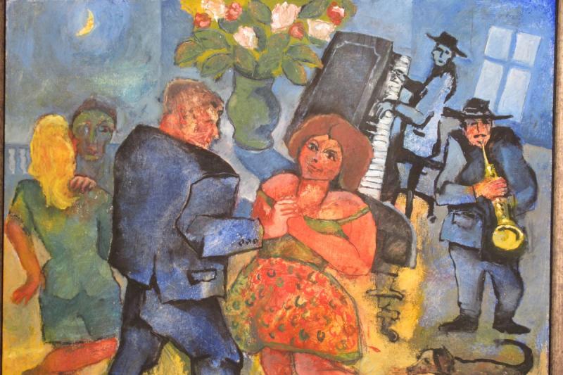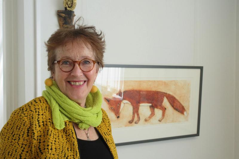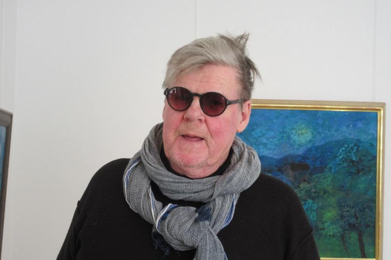 Harar, rävar, lodjur, älgar - alla smyger de sig med in i Aino Myllykangas bilder. Ofta tänker jag att nu ska jag inte ha med något djur men sen känns bilden inte komplett om den inte får åtminstone en liten hare. Det säger Aino som arbetar i collografi, en grafisk teknik där kopparplåten ersatts av kartong. Hon visar också skulpturer i stengods, människogestalter med fiskattribut som en påminnelse om klimatförändringarnas effekt för mänskligheten. Jussi Taipaleenmäki visar måleri som går mycket i blått. Han har varit "blå" ända sedan han inledde sin konstnärliga bana för 40 år sedan. Människor och landskap är favoritmotiv och någon utvecklingslinje vill han inte tala om, han återkommer till motiv han behandlat för länge sedan och arbetar gärna i dialog med konsthistorien. Alla konstnärer står på sina föregångares axlar som han säger.