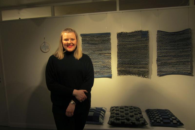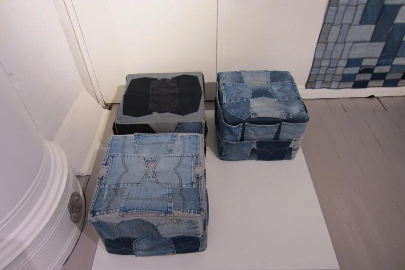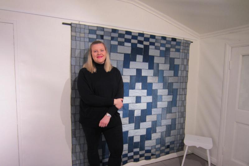 I våras blev Ellen Mattsson, 22 år, klar med sin kandidatexamen vid Linköpings universitet med inriktning hantverk. Nu har hon ett mellanår och medan hon funderar på hur den fortsatta karriären ska bli har hon arbetat fram sin första separatutställning där allt som visas är gjort av avlagda jeans. En speciell teknik hon har använt sig av är flätning enligt samma princip som man flätar spånkorgar har hon flätat bl a en matta av jeansremsor. Mattan är 2 x 2 m stor. Med samma teknik har hon också gjort stora kuddar med traditionella vävtekniker som mönsterförlaga. utställningen har vernissage på torsdag och visas sedan månaden ut.