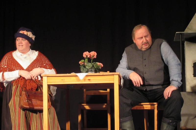 Fyra skådespelare står på scenen i den här uppsättningen: Jan-Erik Berglund som husbonden Magni, Viveca Karlsson som hans trotjänarinna Lovisa, Jessica Öhman somn hans tilltänkta fästmö och så fjärdingsmannen Rapp tolkad av Kaj Lybeck som gör sitt bästa för att sprida skvaller och missämja. Pengar spelar en viktig roll vid valet av tillkommande och karaktärernas verklighet skiljer sig förstås mycket från den vi lever i idag. Pjäsen ges i originalversion inklusive bruket av tredjeperson i alla tilltal - däremot har Synnöve Westerberg förvandlat den till en tvåaktare för att få in en paus med kaffeservering i programmet. Den svarar marthorna för. Tio föreställningar är inplanerade under mars månad säger Synnöve Westerberg. För ljud och ljus svarar Oliver Lehtinen.