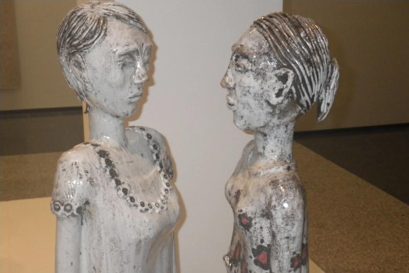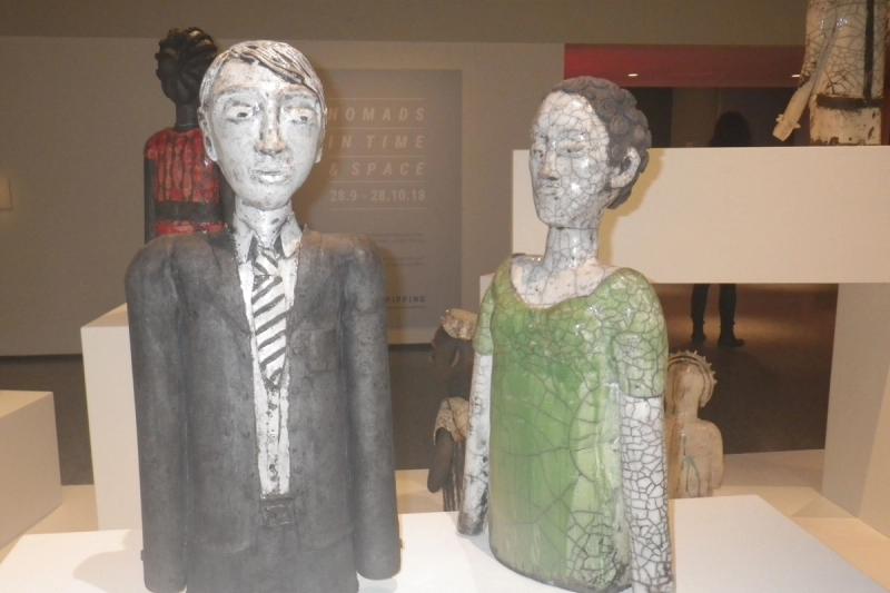Nomader i tid och rum kallar Caroline Pipping sin första separatutställning på Ålands Konstmuseum. Mänskliga figurer i rakubränd lera står i centrum, omgivna av abstrakt måleri