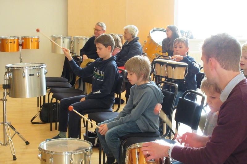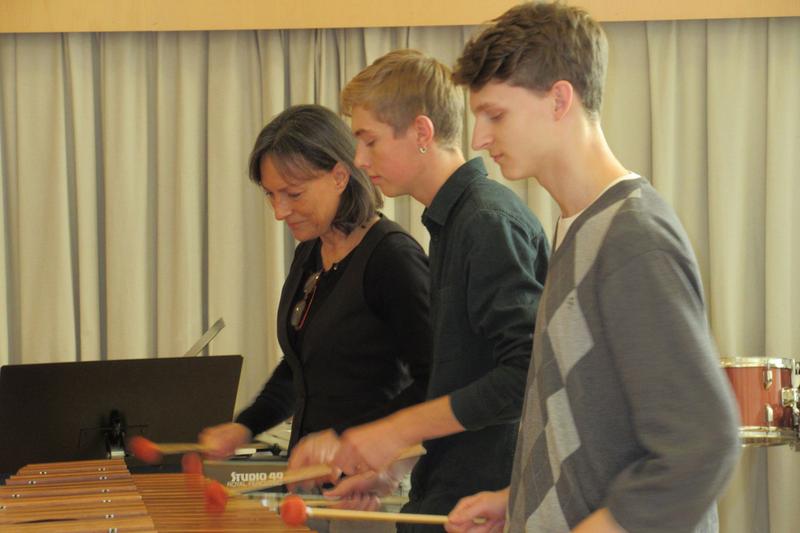 Under två öppna workshops i Strandnäs skolas musiksal kunde de åländska slagverkarna, både elever från musikinstitutet och äldre slagverksintyresserade arbeta tillsammans med hela den billast av olika sorters slagverksinstrument som gästerna från Ingesund hade med sig. Inledninmgsvis gav de prov på sitt kunnande med en svängig ragtime framförd av de fem eleverna från Ingesund men därefter fick publiken ta plats vid de olika instrumenten och Rolf Landberg såg till att alla faktiskt fick något att spela på, också de blygaste. Musiken växte fram anefter då rytm lades till rytm utan att någon visste vart det hela var på väg. Det var fantastiskt intygade Jack Hancock och Oskar Johansson, bägge slagverksstuderande vid ÅMI. Kim Jansson som är lärare i slagverksinstrument vid ÅMI var väldigt nöjd över att inbjudan till Ingesundsgänget fallit i god jord.