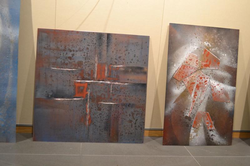 Hon - färggranna dockor med retrostuk, han- tavlor målade på rostig plåt. I veckans Kulturmagasin tar vi en titt på utställningen.