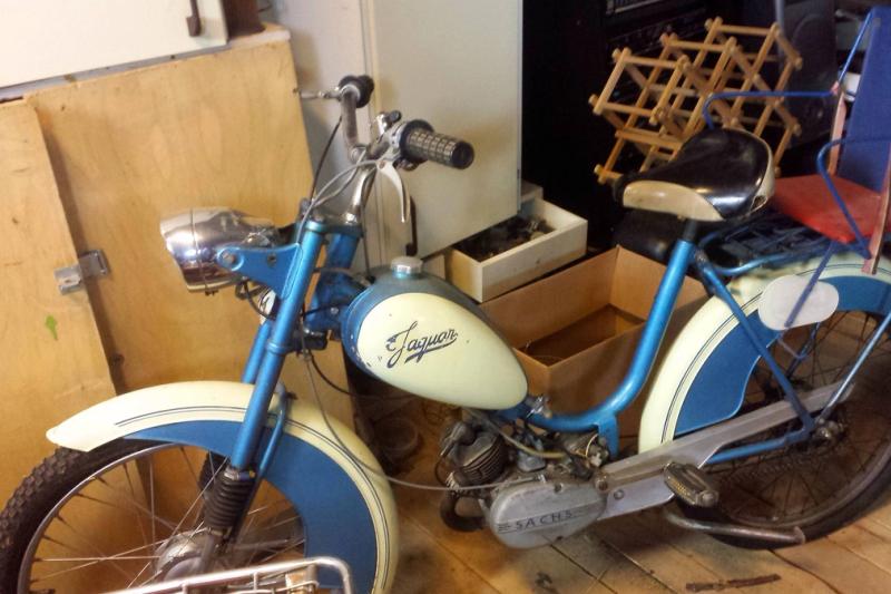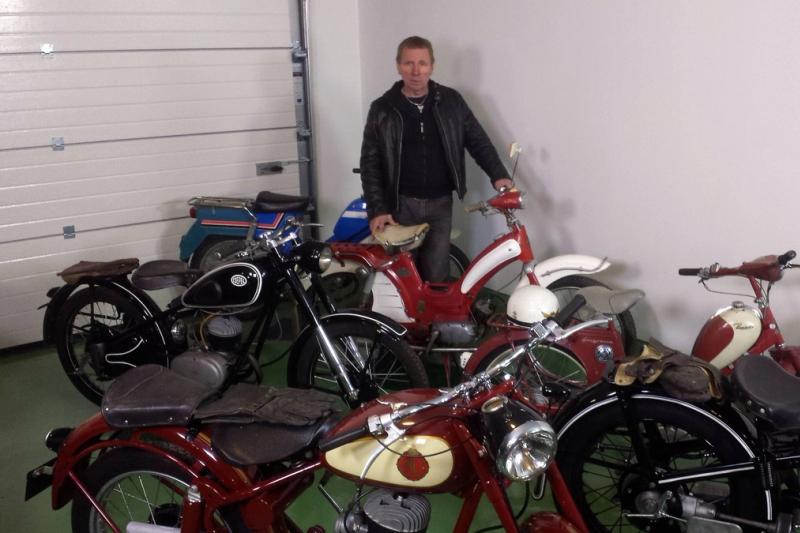 Media 5 av 8Paavo Salmi bland moppar o motorcyklar, foto Kjell Brändström.