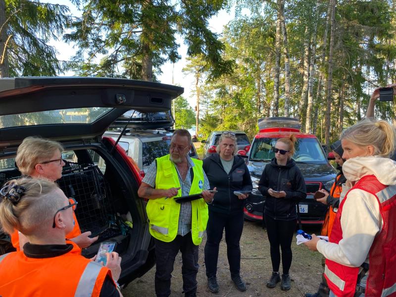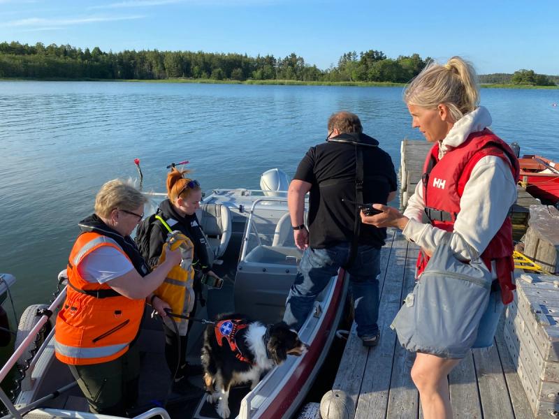 Under övningen bildades tre sökgrupper, med varsin hund i varje grupp. Två grupper sökte till fots på land, medan den tredje använde båt för att söka från vattnet.