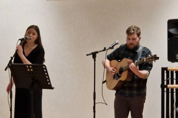 Sista akten på scen under Visans vänners vårkonsert där föreningen bjöd på musik med några nya röster i vissammanhanget var trubadurduon Elin Häggblom och Lucas Grönwall. Två musikaliska ringrävar som spelat tillsammans på pubar och restauranger i femton år.