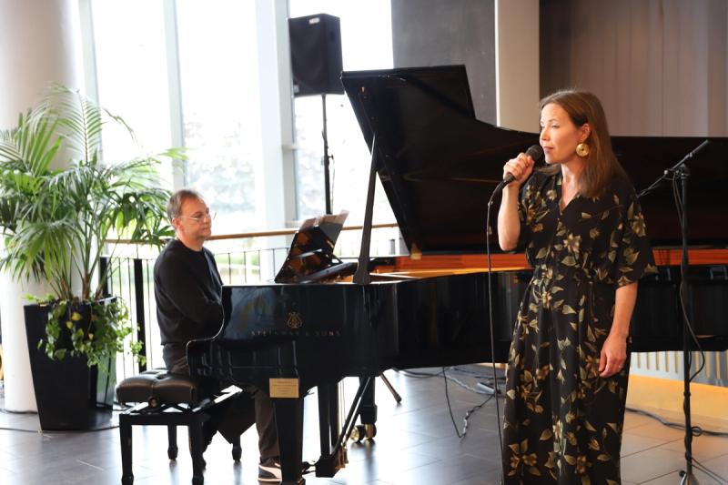 Det är paret och musikerduon Julia Korkman på sång och Patrik Komorowski på piano, som i september 2025 arrangerade konserten i Alandicas foajé.