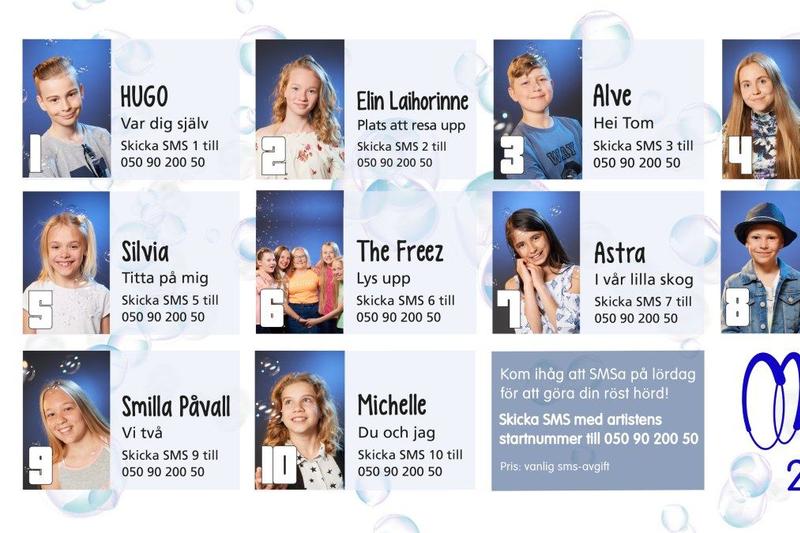 SMSet kostar som ett vanligt SMS. TV-sändningen från MGP kan du se på Yle fem med start klockan 18.00 på lördag.
