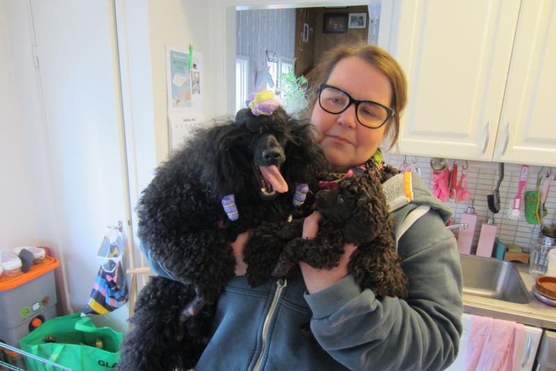 Lillan Holmberg är en av Ålands pudelentusiaster. När dörren till hennes hus öppnas rinner fyra svarta pudlar, två med pälsen förberedd för utställningsfrisyrer, ut.