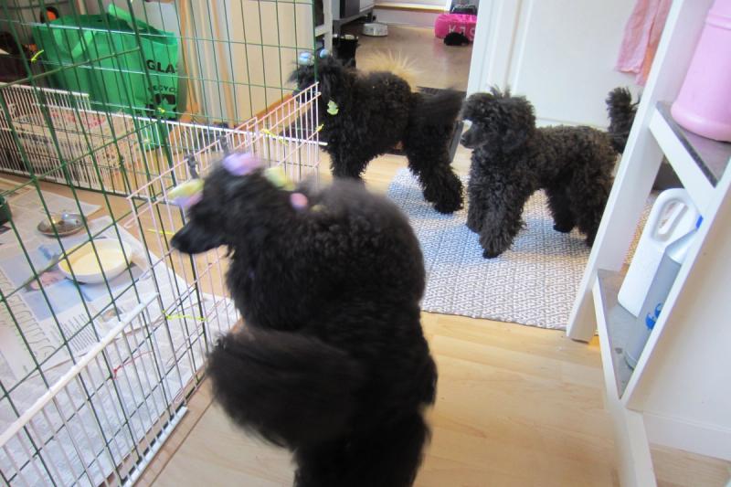 Inne i huset finns tre pudlar till, fem veckor gamla valpar som när de blivit lite äldre ska få nya hem och familjer.