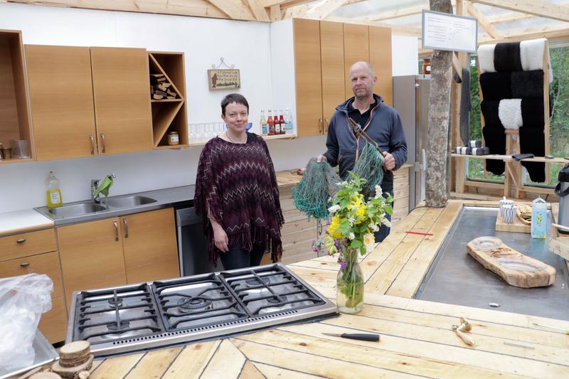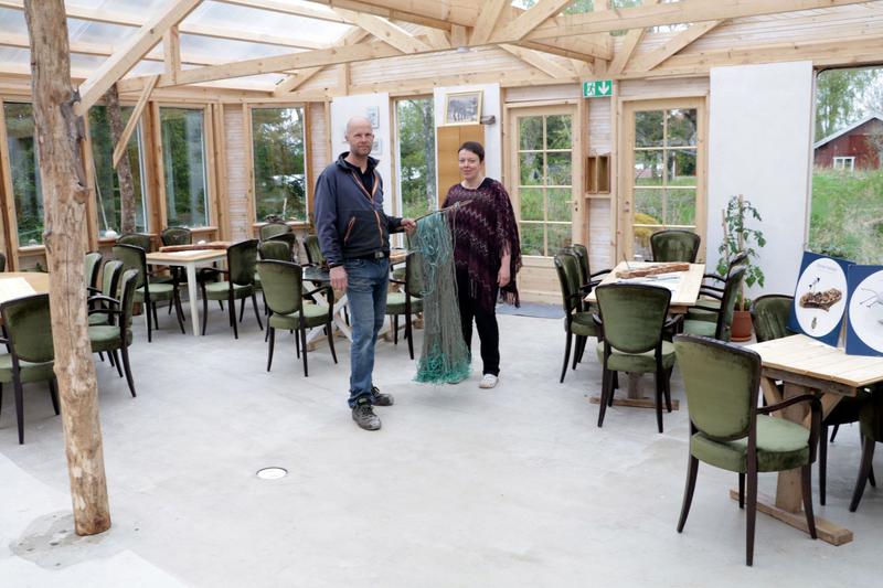 Idag besökte vi företagarna Maria och Anders Westerberg på Västerro i Lemland där nu det nya växthuset är klart och vinrankorna svingar sej mot taket. Växthuset som egentligen är mera restaurang än drivhus. I november 2016 började Anders växthusbygget och till evenmanget Åland Grönskar hade man smygpremiär. Idag går det att ta emot trettio personer samtidigt i lokalen. - I framtiden är det tänkt att vi ska kunna ta emot femtio personer här men då får jag nog bygga ut lite, säger Anders och ser lite finurlig ut.