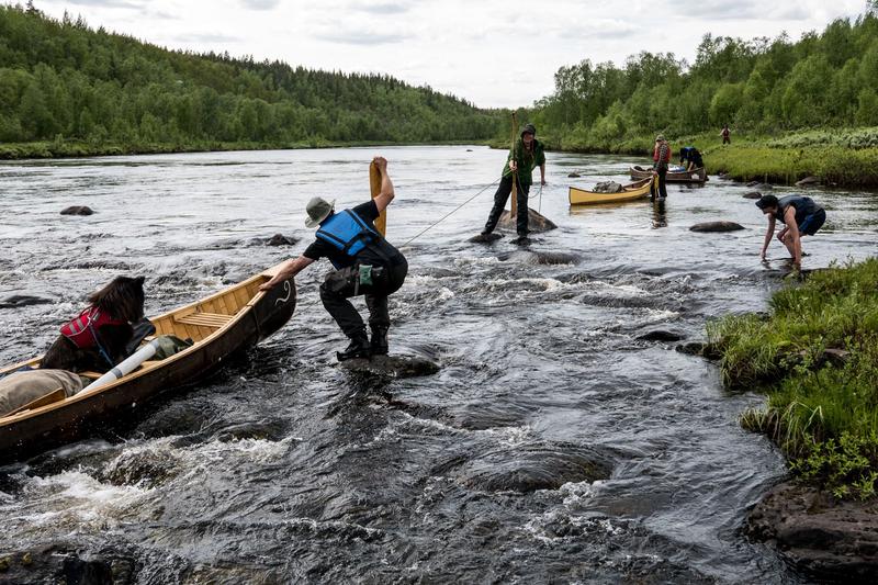 - Eftersom vattenståndet var lägre än vi hade trott var vi tvungna att bära och släpa kanoterna efter oss under långa sträckor. Det saktade ner oss, så att de tre veckor det skulle ha tagit att komma till Ivalojoki blev fyra och vi fick börja hushålla med maten.