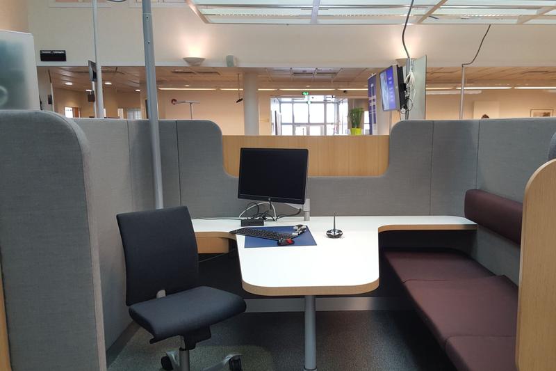 Bankdirektör Jan-Erik "Jenki" Rask säger att det är hela Nordeakoncernens tanke att ha öppna landskap. Personalen har heller inte egna platser utan tar sin bärbara dator och kopplar in sig vid en ledig station.