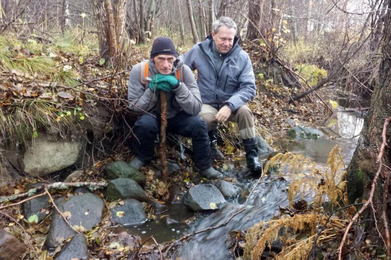 Vid normala fall brukar fisken börja sin lek redan i oktober men det senaste dygnets regnväder plus att havsvattennivån stigit till normalvärde gör nu att de mjölk och romfyllda fiskarna kan påbörja sin vandring. Torsten Fredriksson och Ingmar Pingo Eriksson från Ålands fiskevårdsförening gick tillsammans med programvärden Kjell Brändström en vandring längs bäckfåran i Bäckäng i Lemland där man lite snopet kunde konstatera att de högst sannolikt ännu var ett dygn för tidigt för fisklek.