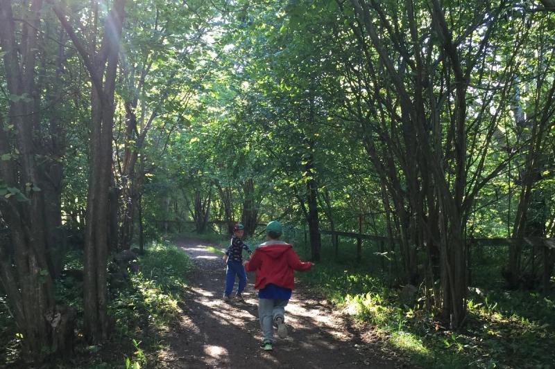 Glada barn som springer.