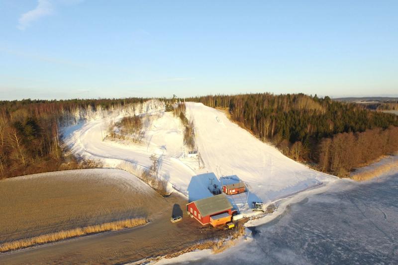 Snötäcket ligger tjockt över slalombackarna efter att snökanonerna fått arbeta. Under sportlovsveckan har man dessutom extra öppet för dem som vill åka slalom på hemmaplan berättar Peter Smulter, aktiv inom Germundö Alpin.
