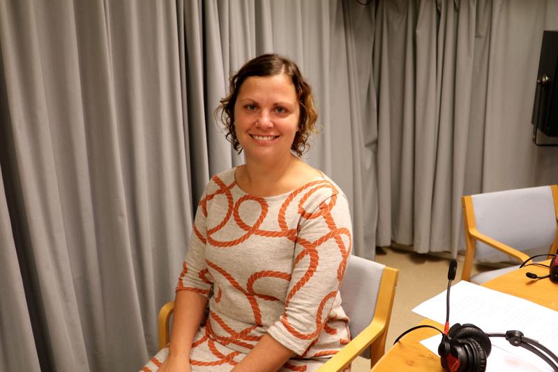 I eftermiddag på Folkhälsans familjecafé berättar logoped Jenny Eriksson om babytecken.