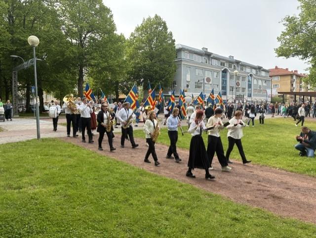 Ålands 103 år av självstyrelse firades, som brukligt är, vid Julius Sundblom-statyn vid torget i Mariehamn i dag, den 9 juni.