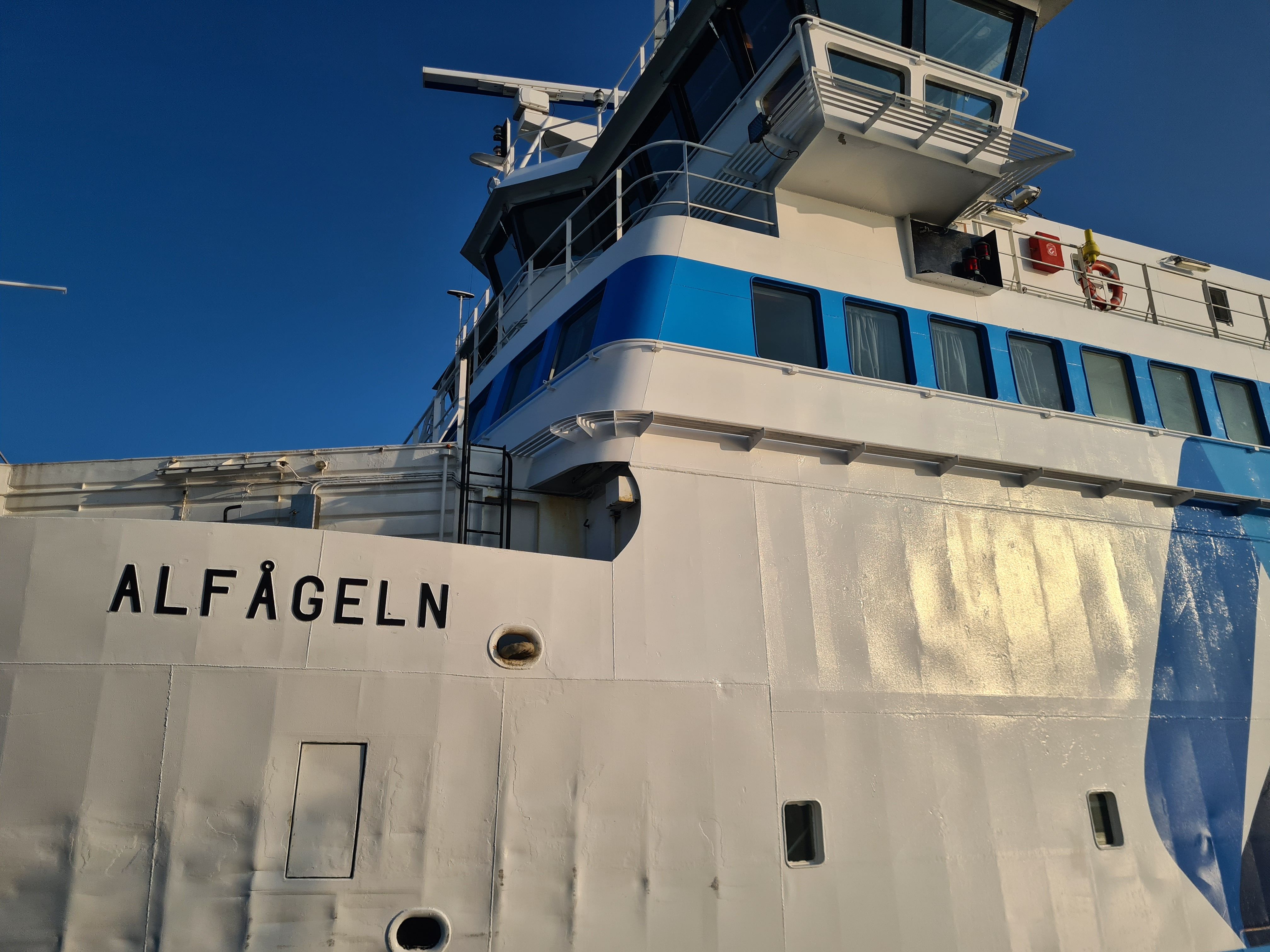 Vid klockan 14.15 meddelar Ålandstrafiken att Alfågeln står stilla i Kumlinge på grund av ett tekniskt fel.