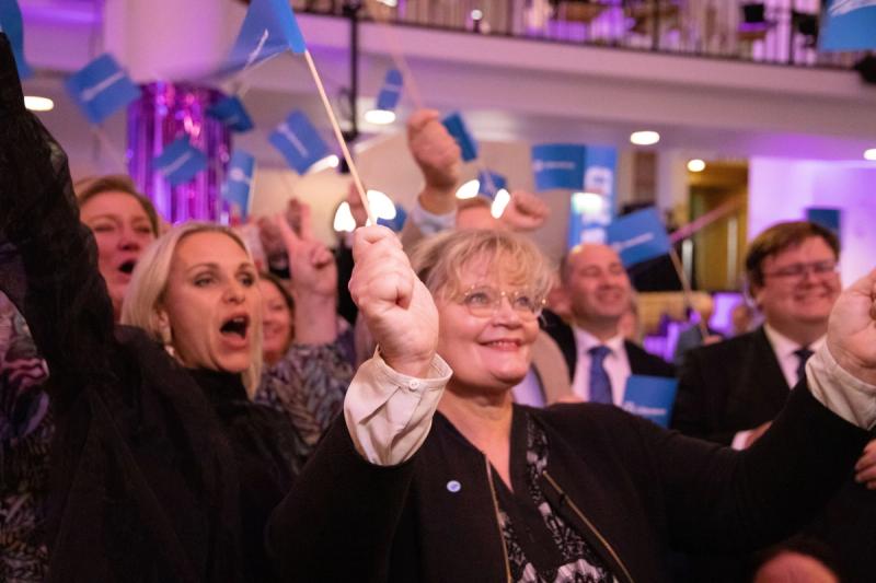 20.03: Valvakan drar igång och stämningen på Alandica är förväntansfull. 20.30 väntas förhandsrösterna komma in.