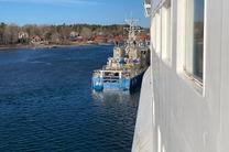 Då lämnar hon Berghamn i Eckerö och styr mot Grisslehamn där hon i går onsdag var inblandad i en kollision då svenska Kustbevakningens fartyg av okänd anledning körde in i sidan på henne då hon låg förtöjd.
