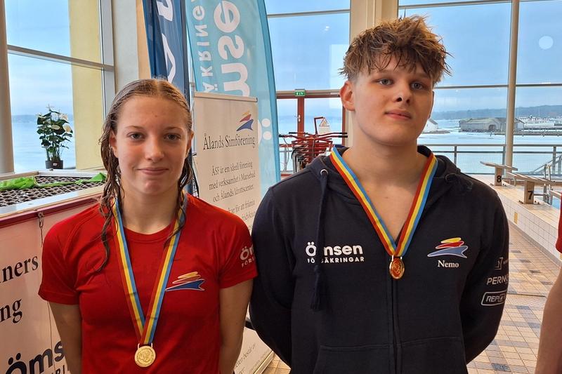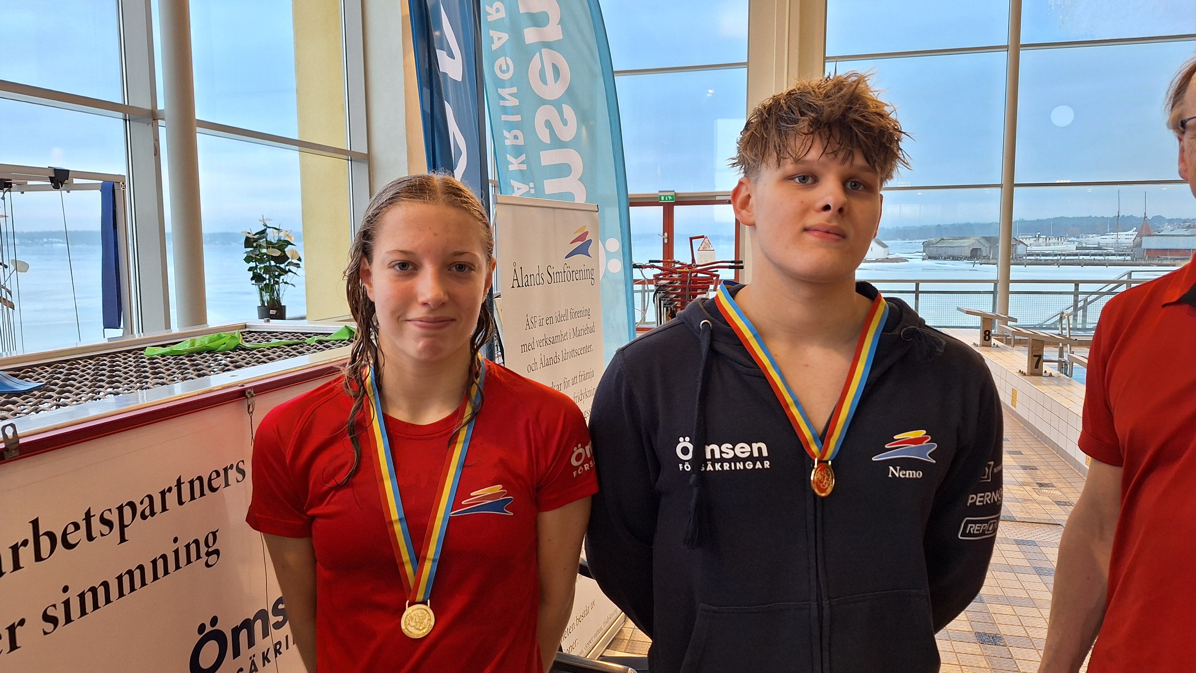 Simmarna Selma Nordberg och Vincent Hellgren tog guld i både 50 meter fjärilsim och 200 meter frisim i samband med lördagens månadstävling i Mariebad.