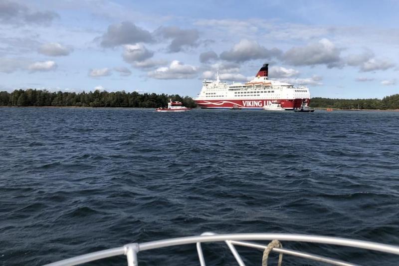 Efter en heldag och -kväll till sjöss har m/s Amorella nu anlöpt Nådendal.