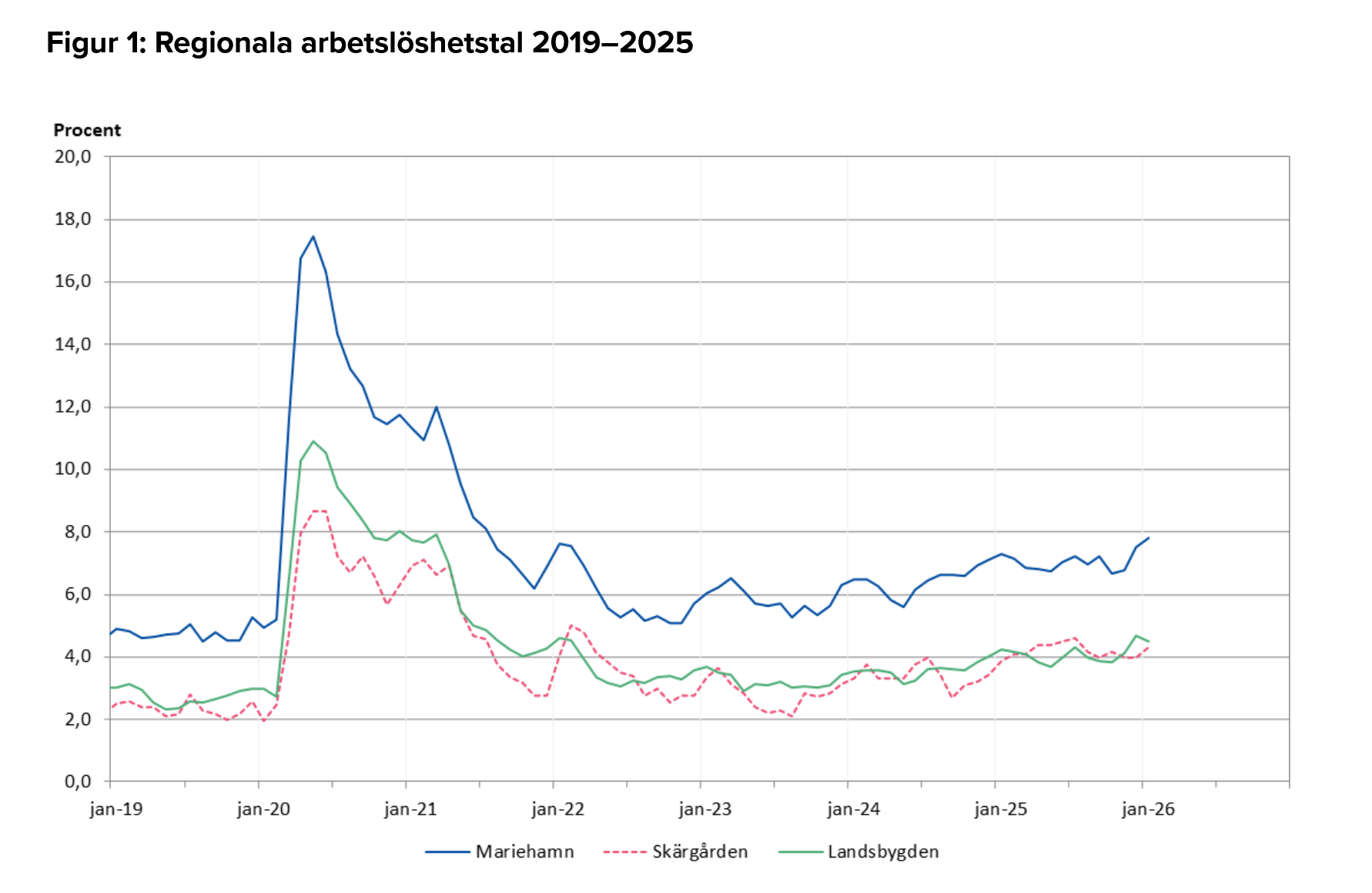 5,7 procent var arbetslösa i januari, visar månadens siffror från Ålands statistik- och utredningsbyrå, Åsub.