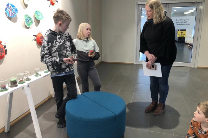 Barnen bidrar till den nya utställningen om naturen på Jomalas bibliotek