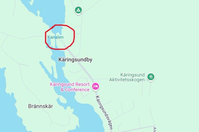 Bil i vattnet vid kanalen norr om Käringsund – dykbilen inkallad